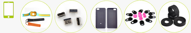 ইলেকট্রনিক্স শিল্প: তরল সিলিকন উপাদানের জলরোধী, ইলাস্টিক এবং উচ্চ নির্ভুলতা তৈরির প্রক্রিয়াটি সিলিকন অংশে যেমন জয়েন্ট ওয়াটারপ্রুফ সিল, হর্ন ডায়াফ্রাম, মোবাইল ফোন কেস, ওয়াচ বেল্ট, বোতাম, ইয়ারফোন ইত্যাদি ব্যবহার করা হয়েছে। ।
